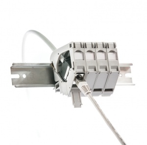 - házak, lakások, vagy ipari elektromos elosztókban lévő DIN sínekre történő rögzítéshez (home networking és ipari ethernet)